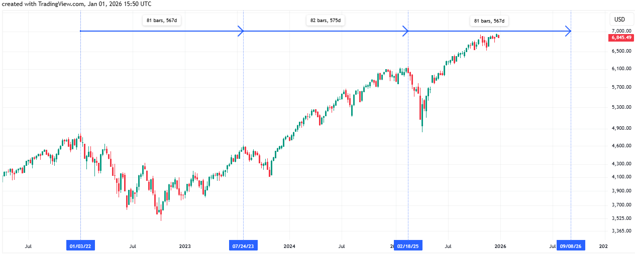 Om detta historiska snitt upprepar sig kan indexet mycket väl befinna sig i en ny accelerationsfas där SPX når nivåer runt 8000 fram mot slutet av 2026. Det bygger på antagandet att trenden inte avbryts av externa chocker likt pandemin 2020, vilket temporärt bröt en pågående cykel.