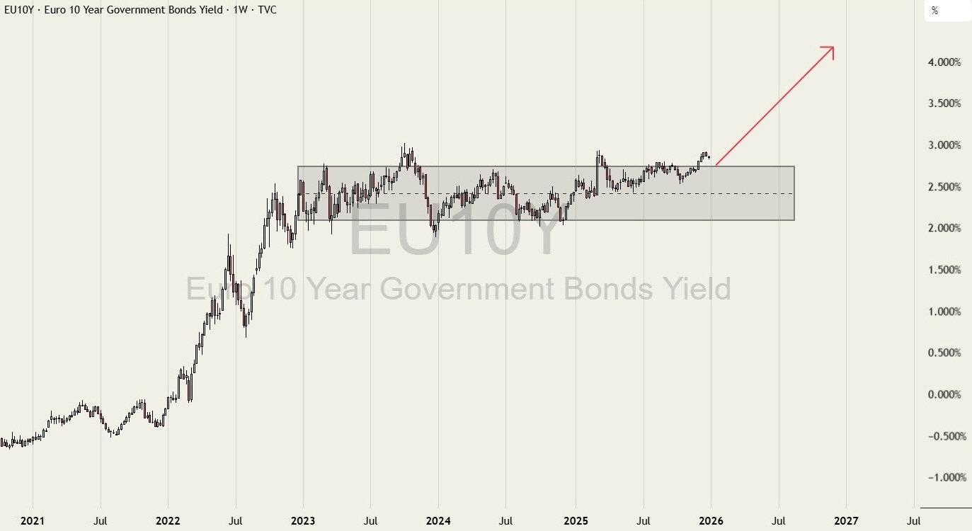 Rörelsen i den europeiska tioårsräntan speglar något djupare än bara en teknisk utbrytning. Efter att ha pendlat inom ett horisontellt spann sedan slutet av 2022 har räntan nu tagit klivet över den övre gränsen och etablerat sig i ett nytt intervall. Det markerar ett skifte i marknadens förväntningar, inte bara kring inflation eller tillväxt, utan framför allt kring trovärdigheten i den penningpolitiska kommunikationen.